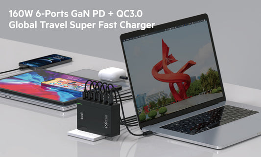 160W 6-Ports Gan PD + QC3.0 Global Travel Super Fast Charger